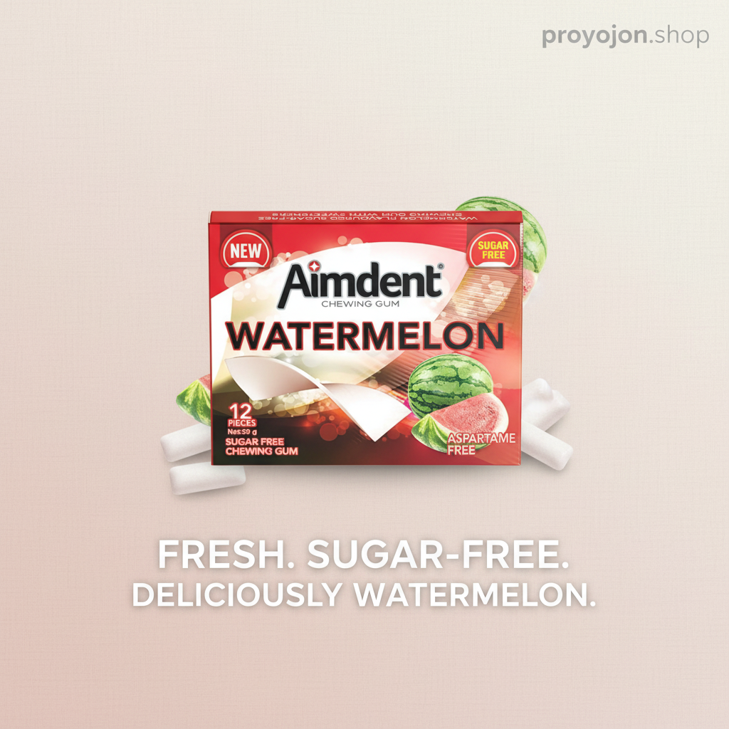 Aimdent Sugar Free Chewing Gum Watermelon 12pcs 33g – experience juicy watermelon flavor, long-lasting chew, and fresh breath in a convenient, portable pack. Perfect for daily use or on-the-go refreshment!