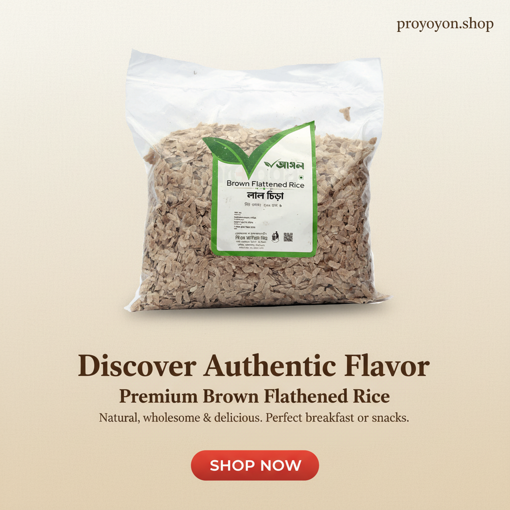 পটুয়াখালির ভোজন চাল থেকে হাতে তৈরি লাল চিড়া ‘আসল’-এর ক্রেতাসমাদৃত একটি পণ্য।