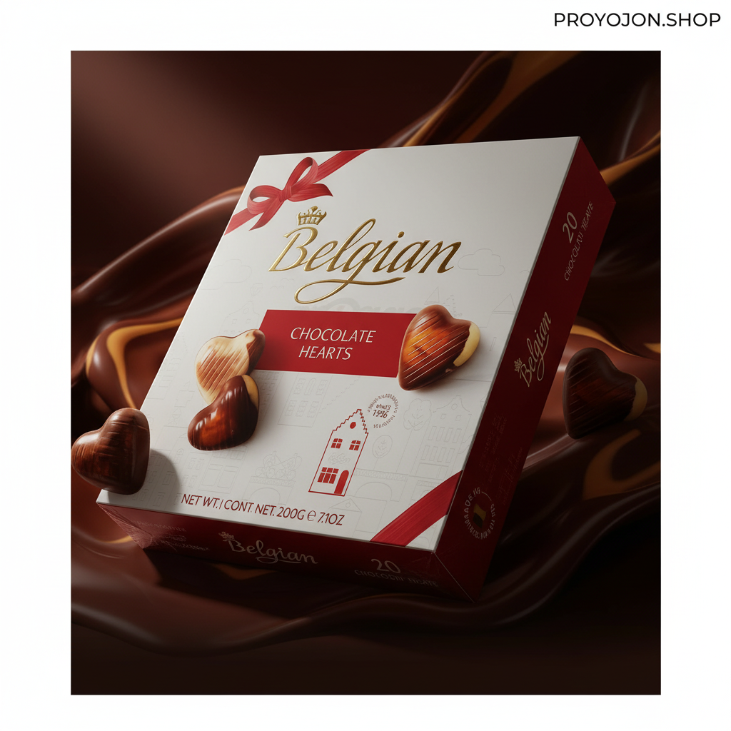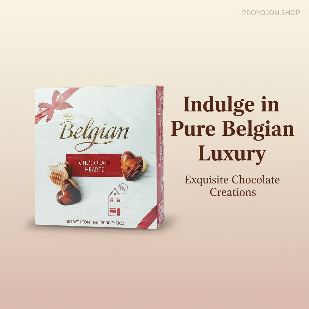The Belgian Chocolate Hearts 200g is a charming gift box filled with heart-shaped chocolates that blend elegance with indulgence.