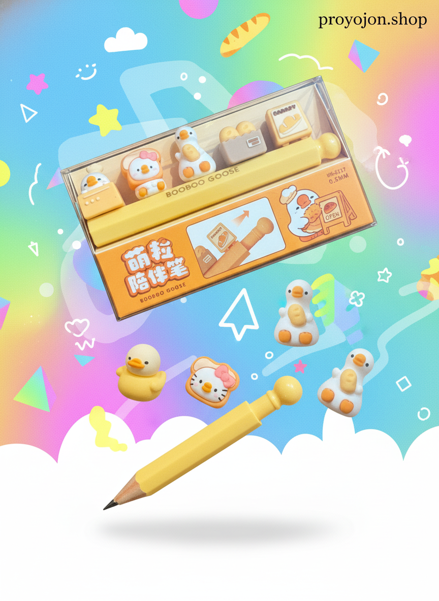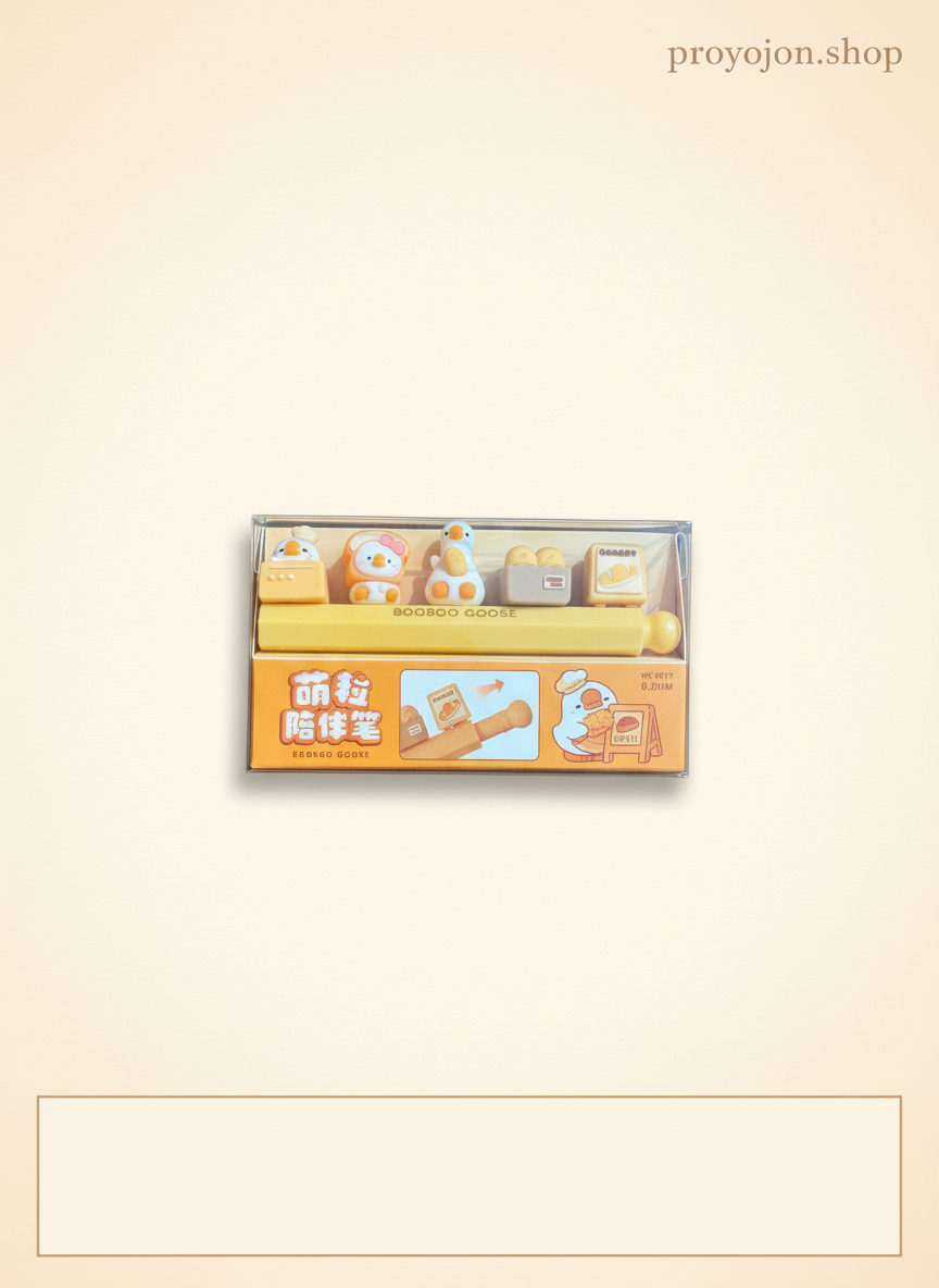 Add a dash of adorable charm to your desk! This 0.5mm mechanical pencil set features the delightful BooBoo Goose and friends in a fun bakery theme. Enjoy smooth writing and easily swap out the cute toppers to personalize your study or work routine. Perfect for gifting.
