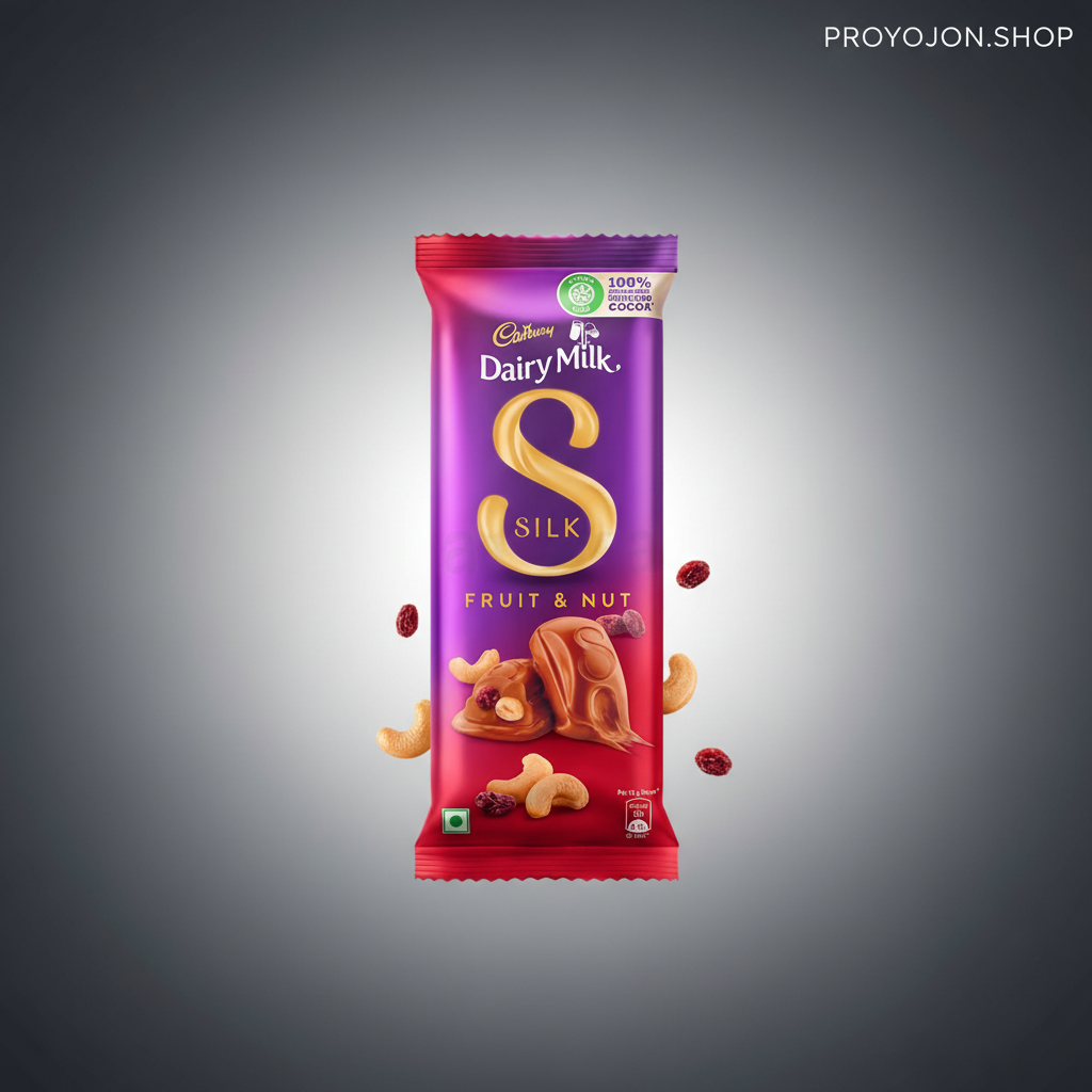 Cadbury Silk Fruit & Nut Chocolate is a luxurious blend of smooth, creamy Cadbury Dairy Milk Silk with crunchy nuts and chewy fruit pieces. This indulgent bar delivers a rich chocolate experience enhanced by the delightful mix of textures, making it a perfect treat for chocolate lovers who enjoy a little extra crunch and flavor.