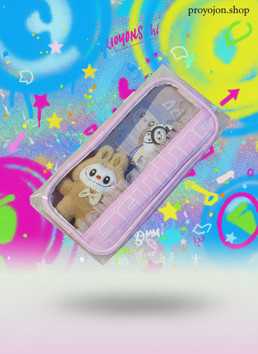 Showcase your favorite small plushies or photo cards in this adorable pink ita bag style pencil case. Featuring a clear window and durable construction, it organizes essentials while adding a personalized, cute touch to your school or office supplies.