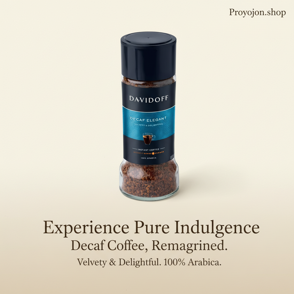 Davidoff Decaf Elegant Instant Coffee 100g offers the refined taste of Davidoff coffee without the caffeine. Crafted for coffee lovers who seek a smooth, aromatic experience any time of day, this decaffeinated blend delivers rich flavor and elegant aroma in every cup. Ideal for those who want to enjoy coffee without compromising on taste or sleep.