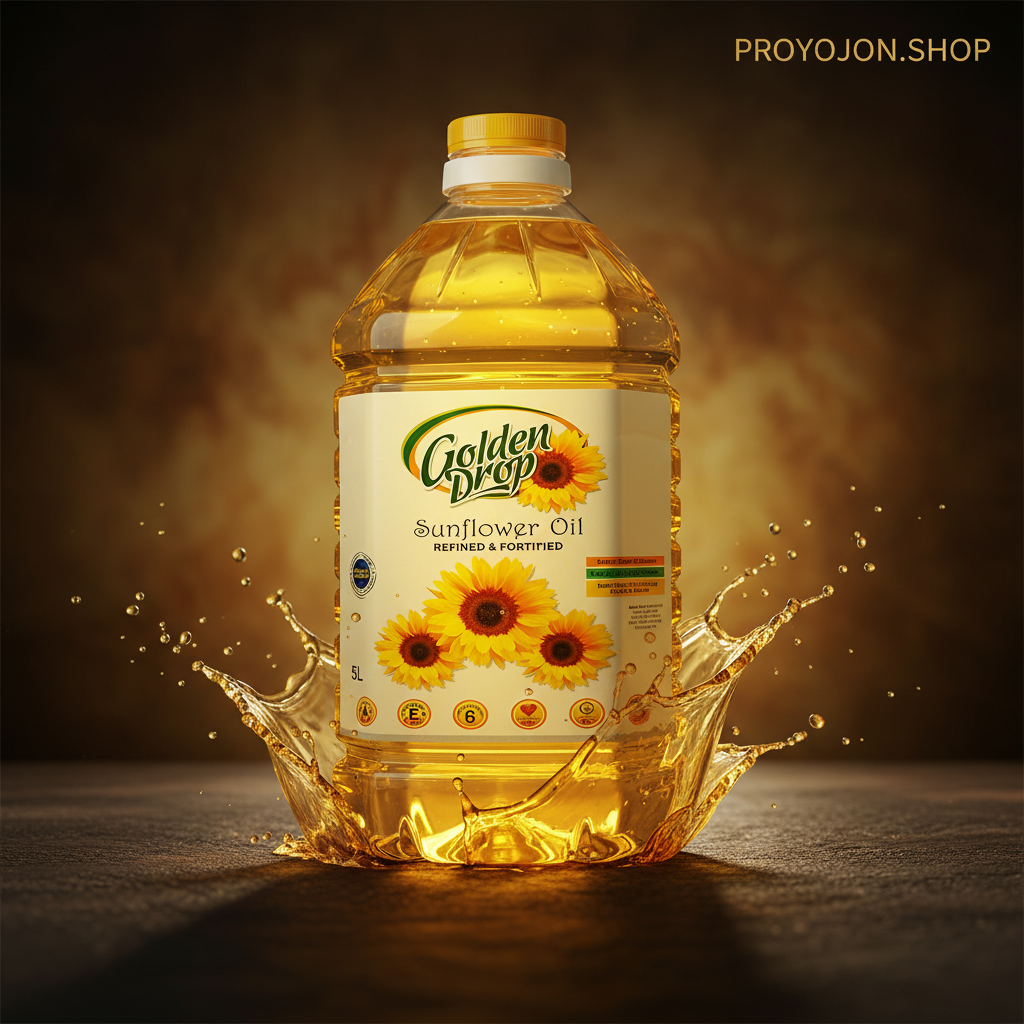 Golden Drop Sunflower Oil - 5 Liters is a large-sized bottle of high-quality sunflower oil, commonly used in cooking for its neutral flavor, light texture, and health benefits. Sunflower oil is versatile and a great choice for various cooking methods. Below is a detailed overview of the product: