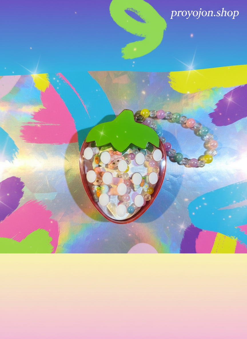 Carry cuteness everywhere! This adorable strawberry shaker charm features vibrant floating beads and tiny charms, complete with a colorful beaded wristlet. Perfect for decorating bags, keys, or adding a nostalgic Y2K touch to your style.