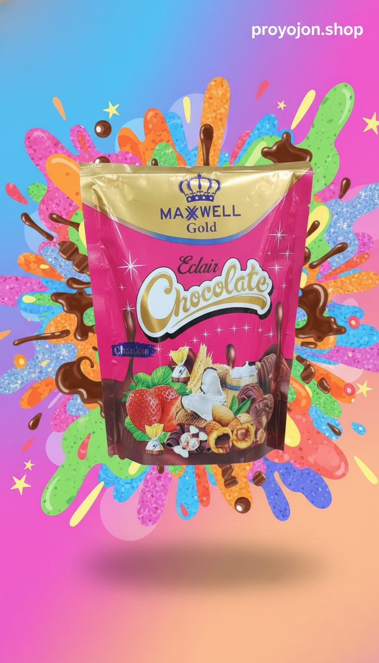 Indulge in the rich, golden blend of Maxwell Gold Eclair Chocolate. Featuring a decadent mix of creamy filling, ripe strawberry notes, and crunchy nuts, this premium assortment is the perfect treat to satisfy your luxurious sweet cravings.