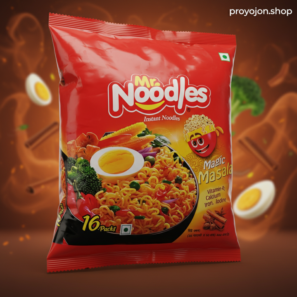 This combo pack from PRAN includes 16 individual servings of Mr. Noodles Magic Masala flavor. It’s a popular instant noodle choice in Bangladesh, known for its bold spice blend and quick prep time.