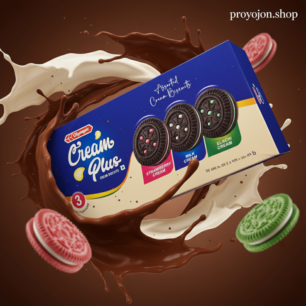 Enjoy the delightful taste of Olympic Cream Plus Biscuits, featuring a trio of magical flavors—Strawberry, Milk, and Elachi (Cardamom). These cream-filled biscuits offer a perfect balance of crispy texture and rich, flavorful cream that makes for a delicious snack any time of the day.