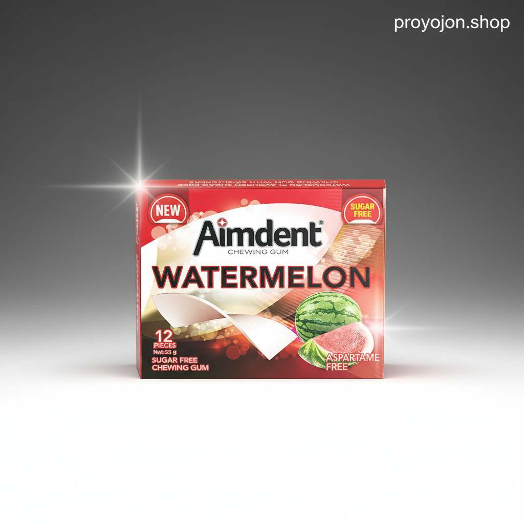 Aimdent Sugar Free Chewing Gum Watermelon 12pcs 33g – experience juicy watermelon flavor, long-lasting chew, and fresh breath in a convenient, portable pack. Perfect for daily use or on-the-go refreshment!