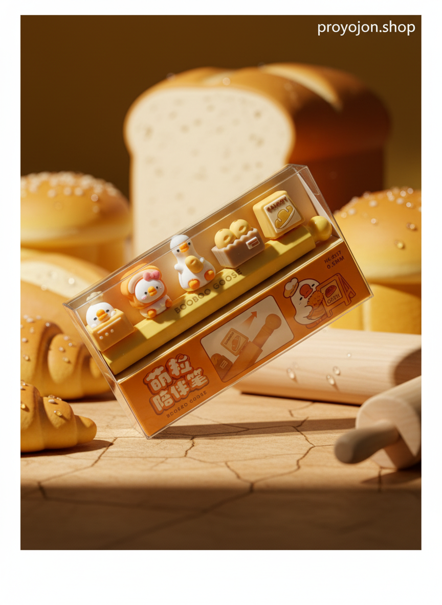 Add a dash of adorable charm to your desk! This 0.5mm mechanical pencil set features the delightful BooBoo Goose and friends in a fun bakery theme. Enjoy smooth writing and easily swap out the cute toppers to personalize your study or work routine. Perfect for gifting.