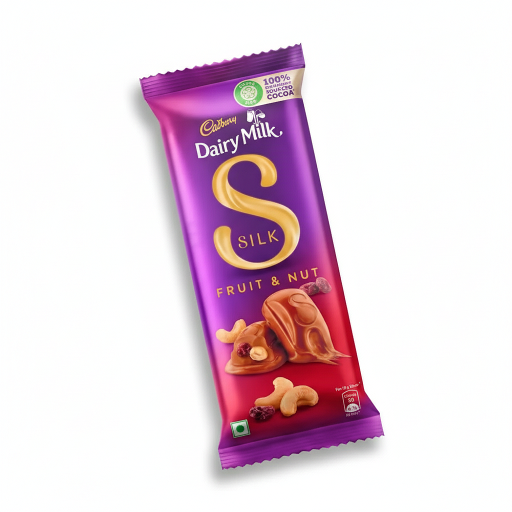 Cadbury Silk Fruit & Nut Chocolate is a luxurious blend of smooth, creamy Cadbury Dairy Milk Silk with crunchy nuts and chewy fruit pieces. This indulgent bar delivers a rich chocolate experience enhanced by the delightful mix of textures, making it a perfect treat for chocolate lovers who enjoy a little extra crunch and flavor.