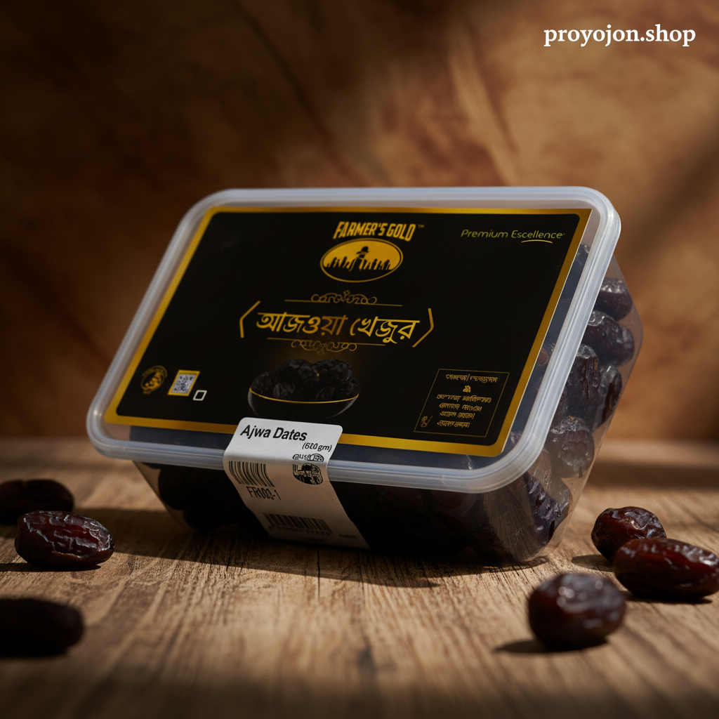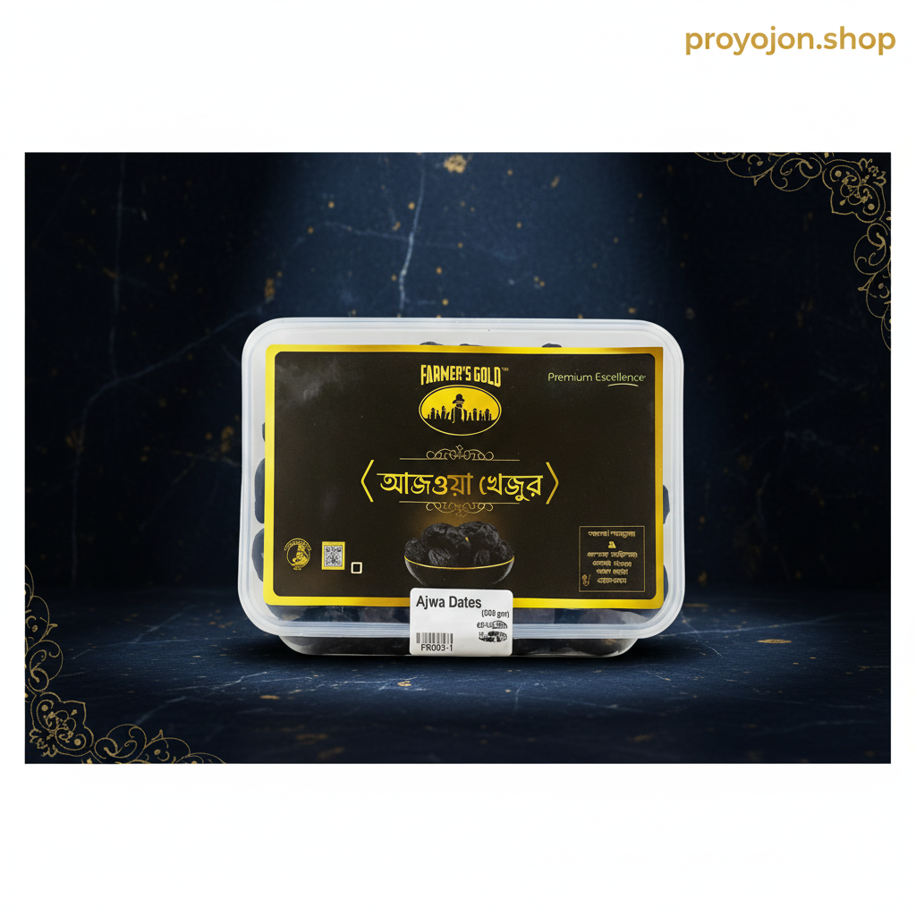 Farmer's Gold Ajwa Dates are premium quality dates sourced directly from Madina, Saudi Arabia, famously known as the Sunnah dates. These dates are naturally sweet, soft, and packed with essential nutrients including fiber, vitamins, and minerals that offer numerous health benefits.