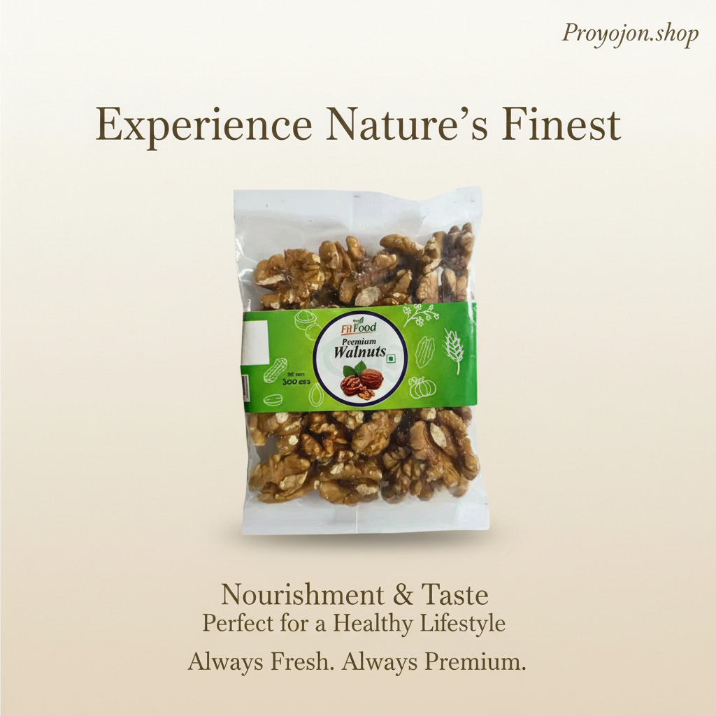 Fit Food Premium Walnuts are nutrient-dense edible seeds sourced for their rich content of omega-3 fatty acids, antioxidants, and protein. With a satisfying crunchy texture and earthy flavor, these walnuts make an excellent snack or addition to baking recipes, salads, and more. Known locally as আখরোট, walnuts boast multiple health benefits, making them a perfect choice for those seeking both taste and wellness.