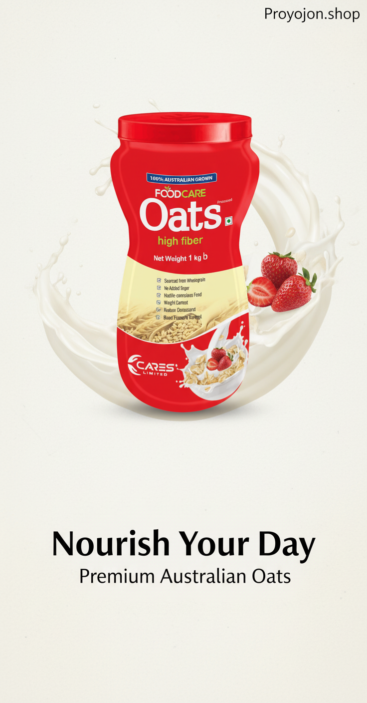 Healthy Breakfast FoodCare Oats 1kg is a premium quality product are a product of Australia and are packed in Bangladesh by Cares Limited to ensure the highest quality and freshness.
