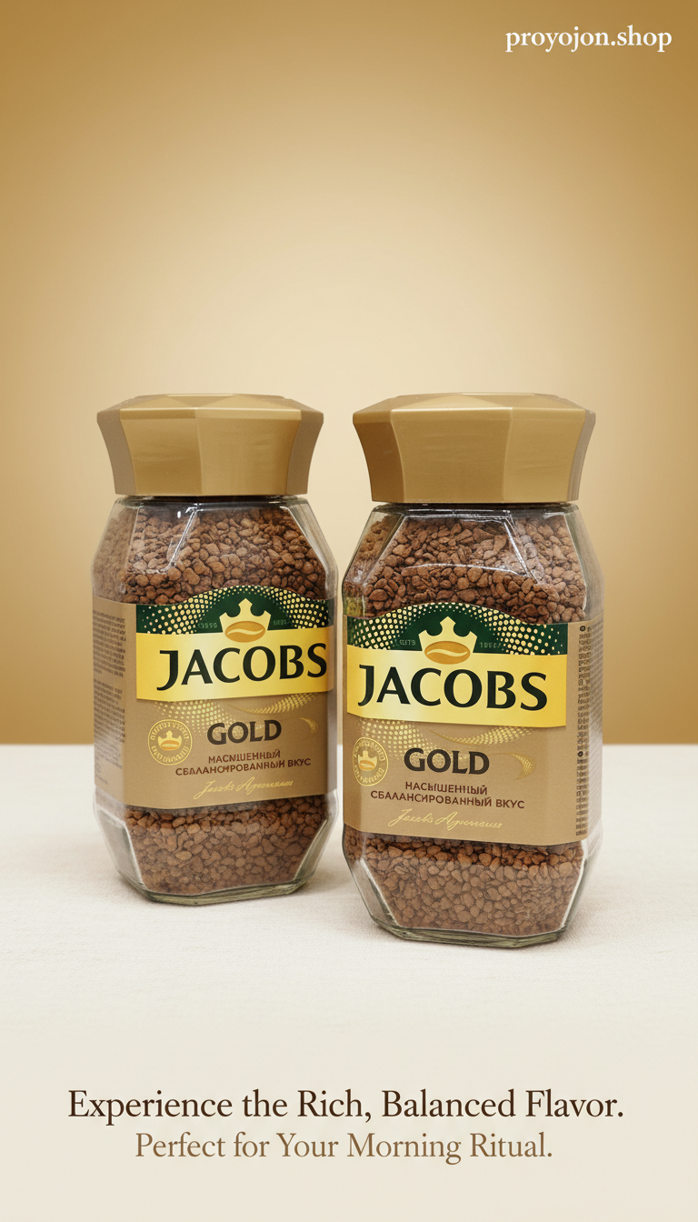 Experience the rich, balanced flavor of Jacobs Gold instant coffee. Crafted for convenience and quality, these finely selected granules deliver a satisfying aroma and intense taste in every cup, making your mornings effortless and delicious.