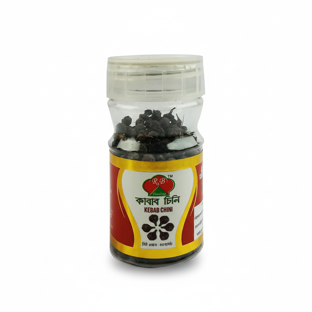 Kabab Chini, also known as cubeb pepper or tailed pepper, is a spice derived from the dried berries of the Piper cubeba plant, primarily grown in Indonesia. It's known for its pungent, slightly bitter taste and aromatic qualities, often described as a mix of pepper, cloves, and nutmeg. Kabab chini is used in both culinary and traditional medicine practices.