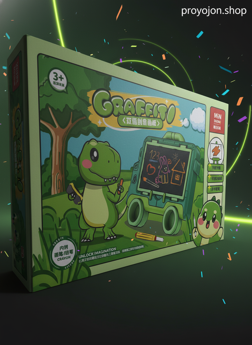 Unleash your child's creativity with this double-sided, erasable drawing board! Featuring a fun dinosaur design, it provides two large surfaces for endless drawing, writing, and learning without paper waste. Perfect for fostering imagination and independent thinking in young artists 3 and up.