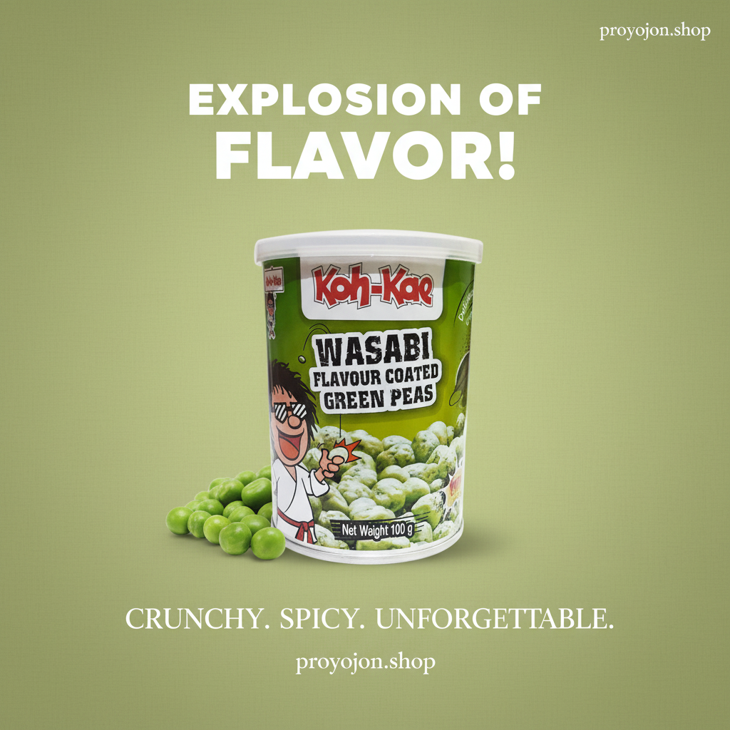 Koh-Kae Wasabi Flavor Coated Green Peas 100g deliver a bold and fiery snacking experience with the sharp kick of authentic wasabi. These crunchy green peas are coated in a spicy wasabi layer that awakens the senses and satisfies cravings for heat and texture.