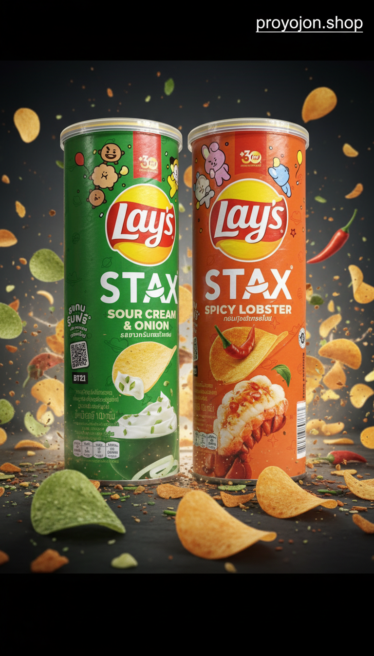 Experience the limited-edition fusion of Lay's STAX crispiness and bold, spicy lobster flavor. Perfect for adventurous snackers and collectors, featuring adorable BT21 characters.