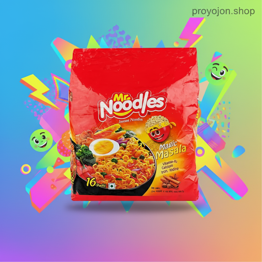 This combo pack from PRAN includes 16 individual servings of Mr. Noodles Magic Masala flavor. It’s a popular instant noodle choice in Bangladesh, known for its bold spice blend and quick prep time.