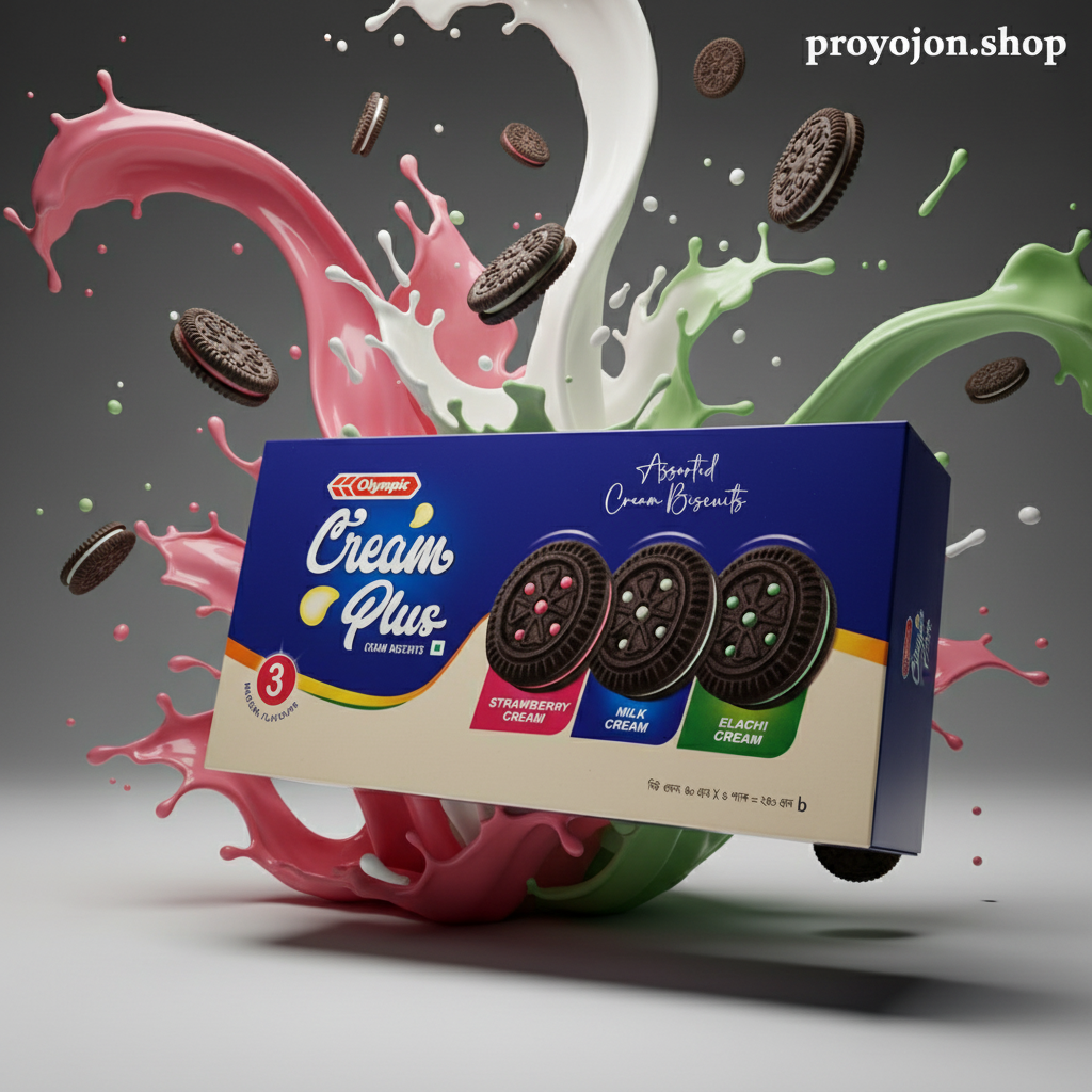 Enjoy the delightful taste of Olympic Cream Plus Biscuits, featuring a trio of magical flavors—Strawberry, Milk, and Elachi (Cardamom). These cream-filled biscuits offer a perfect balance of crispy texture and rich, flavorful cream that makes for a delicious snack any time of the day.