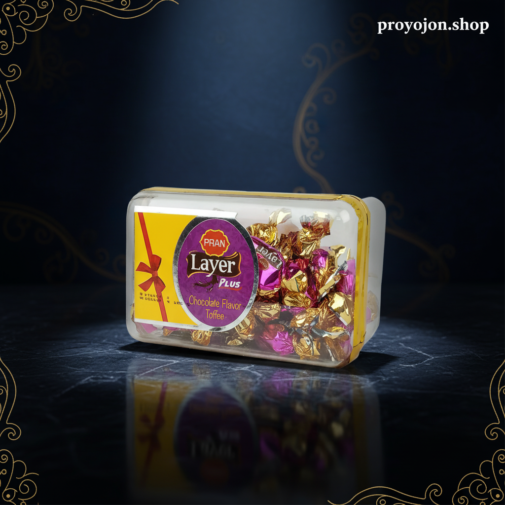Pran Layer Plus Chocolate Flavor Toffee presents a luscious treat with layers of smooth milk chocolate wrapped in a chewy golden caramel exterior. This 185-gram pack offers an indulgent sweet experience perfect for satisfying chocolate cravings with a rich, creamy texture that melts in your mouth.