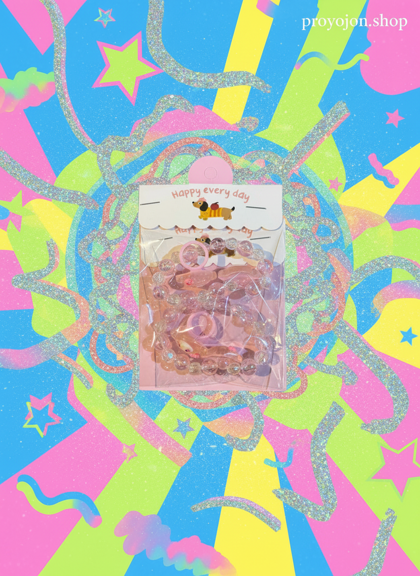 Delight your little one with this adorable sparkly pink bead jewelry set! Perfect for dress-up, parties, or everyday happy accessorizing, the stretch bracelets and matching charms provide instant fun and style. Great small gift idea.