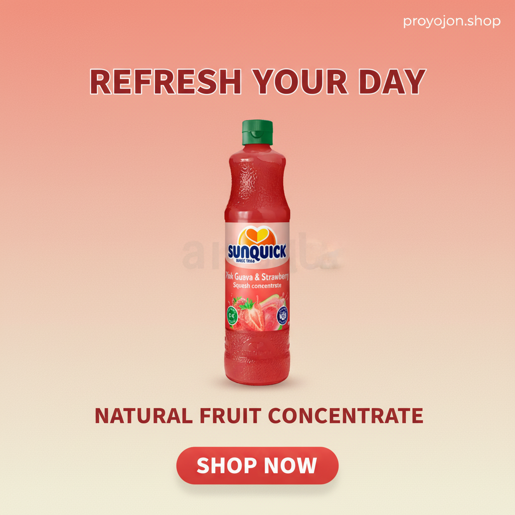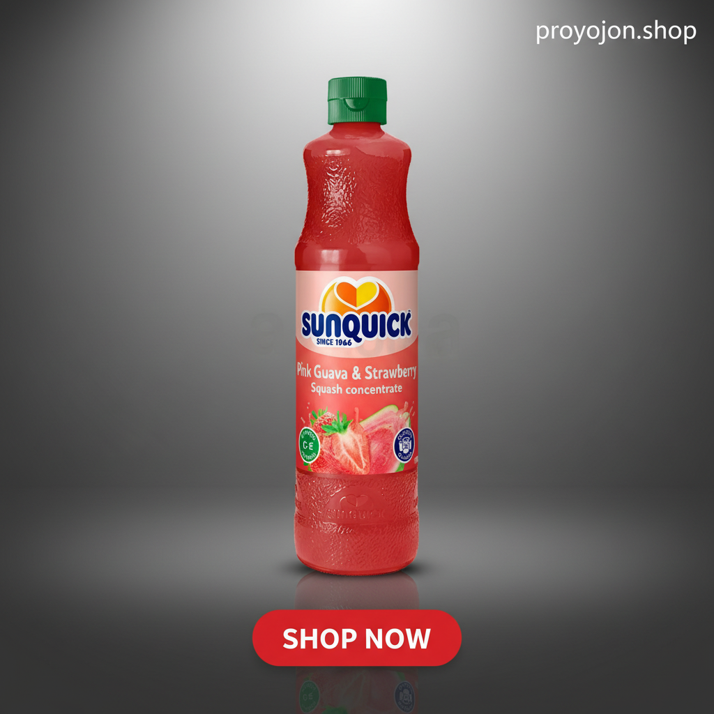 Sunquick Pink Guava & Strawberry Squash Drink Concentrate is a premium-quality, fruit juice-based beverage concentrate beloved by generations. Made with real guava puree, strawberry, grape, and apple juice concentrates, this refreshing drink offers a rich and natural fruity flavor without any artificial flavors, colors, or sweeteners. Enriched with vitamin C and vitamin E, it provides a nutritious boost while delivering a distinctly sweet and tangy taste that refreshes and invigorates.